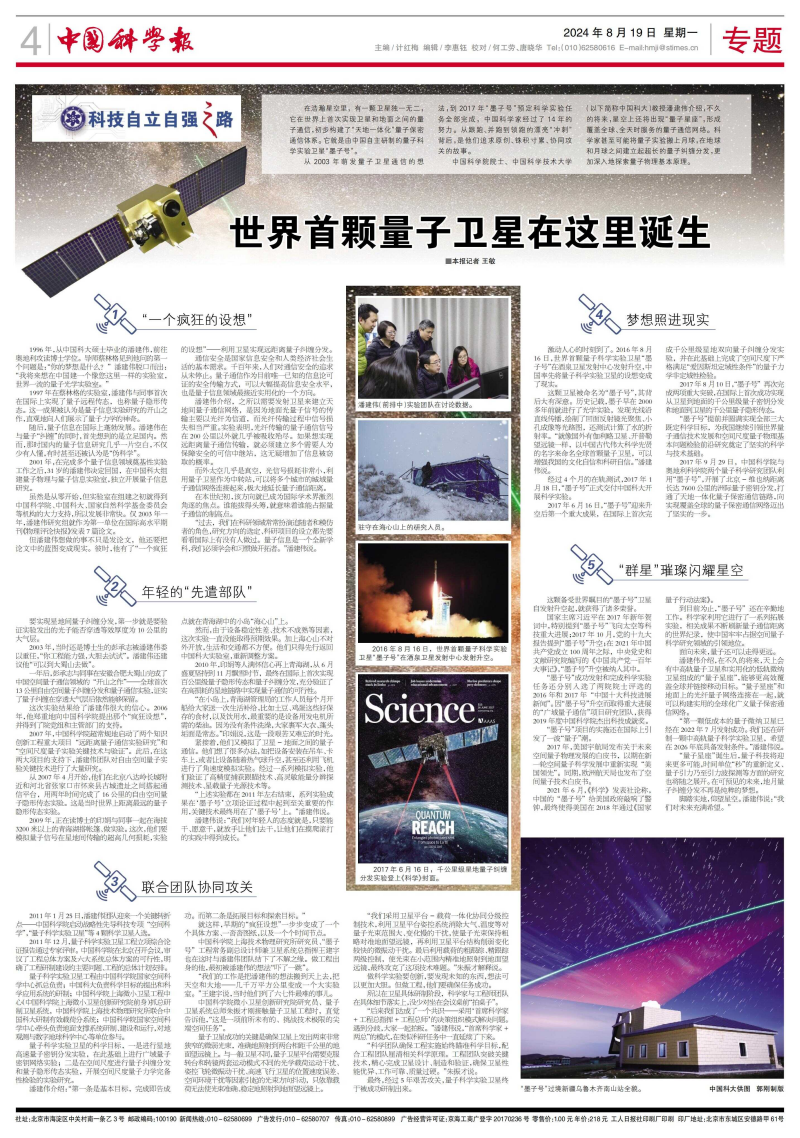 “后来我们达成了一个共识——采用‘首席科学家+工程总指挥+工程总师’的决策组织模式解决问题。遇到分歧,大家一起拍板。”潘建伟说,“首席科学家+两总”的模式,在类似科研任务中一直延续了下来。