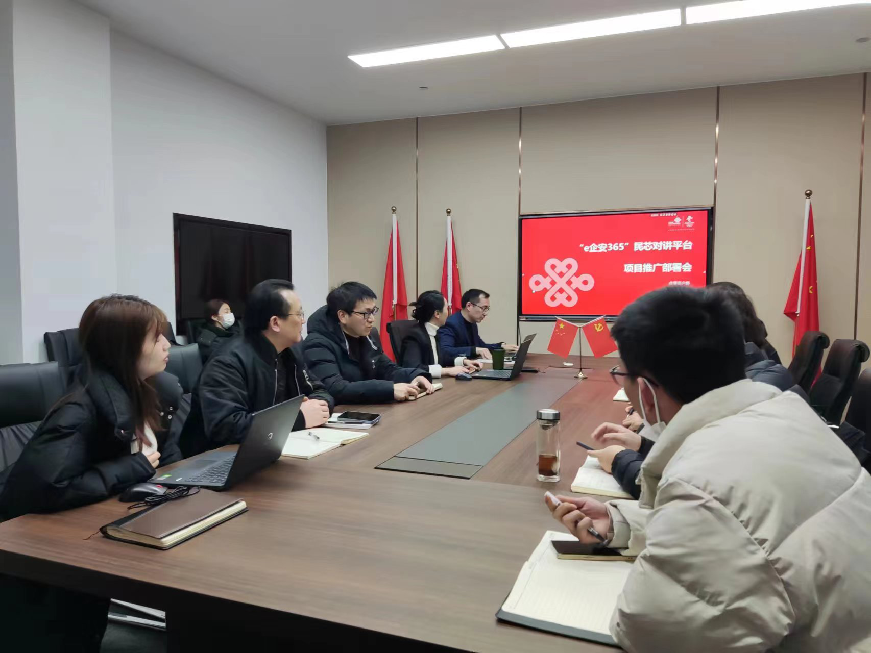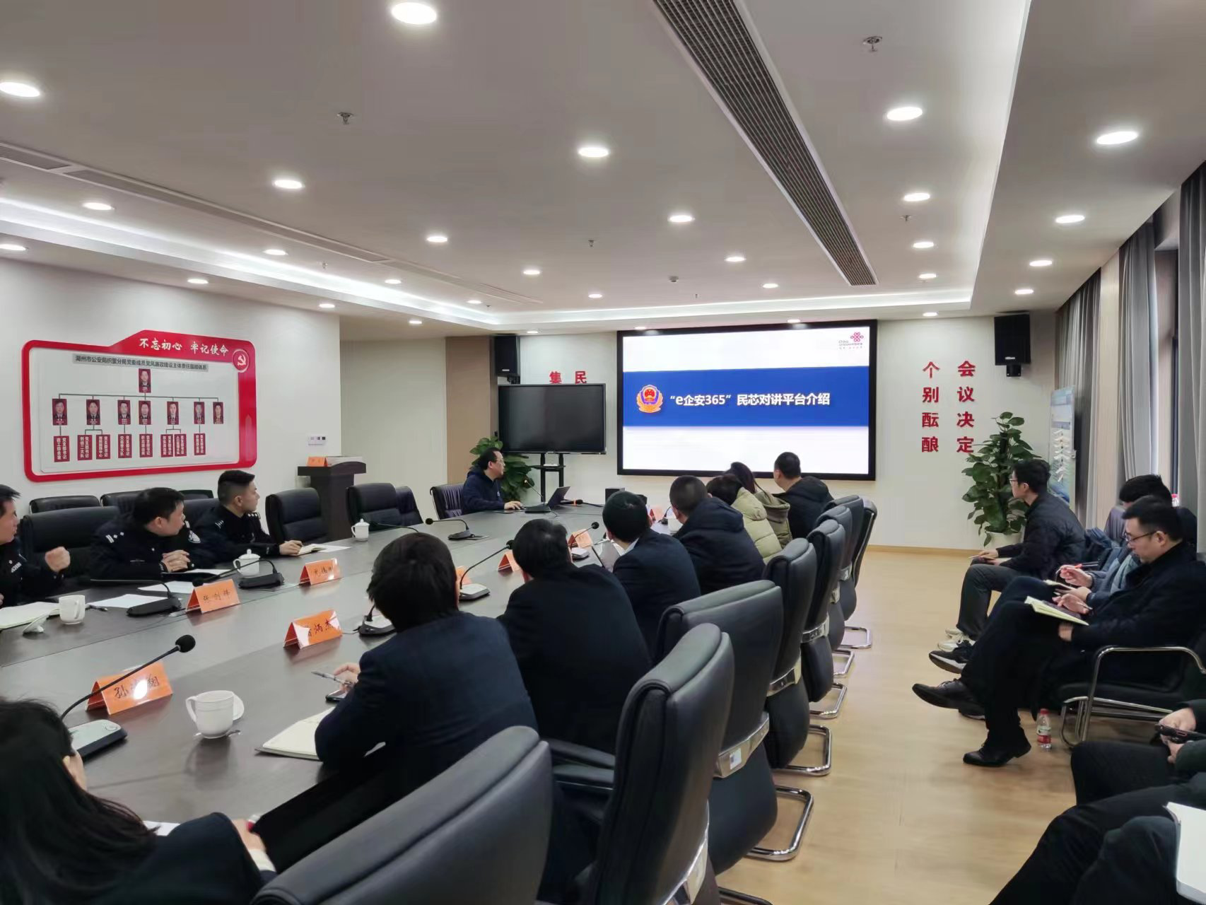 海高思市场团队与湖州市联通召开针对“e企安365”民芯对讲平台项目的推广部署会。